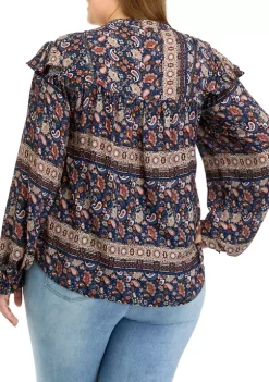 Promo ๐งจ Wonderly Plus Size Printed Split Neck Woven Top โ๏ธ