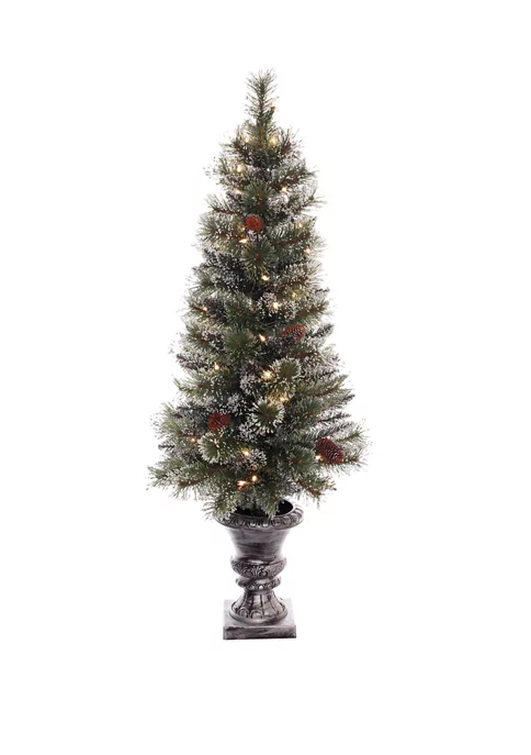 Promo 🌟 Puleo International Battery-Operated Potted Flocked Tree with 50 Warm White LED Light 💯
