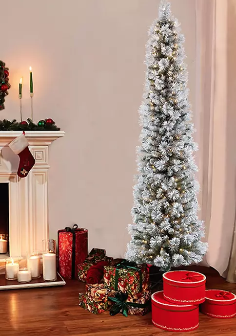 Cheap โ๏ธ Puleo International Pre-lit Flocked Slim Royal Majestic Douglas Fir Downswept Tree ๐