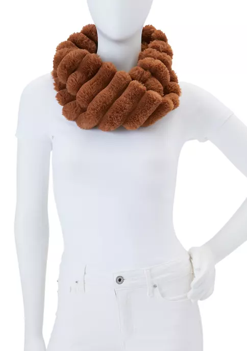 This infinity scarf by Wonderly is made of rich, caramel-colored fur, and brings a warm and luxurious touch to any ensemble.